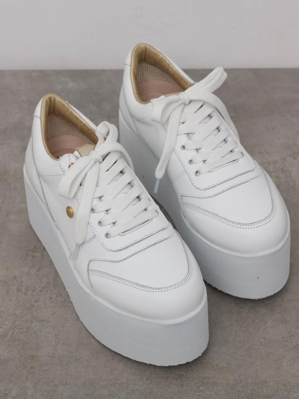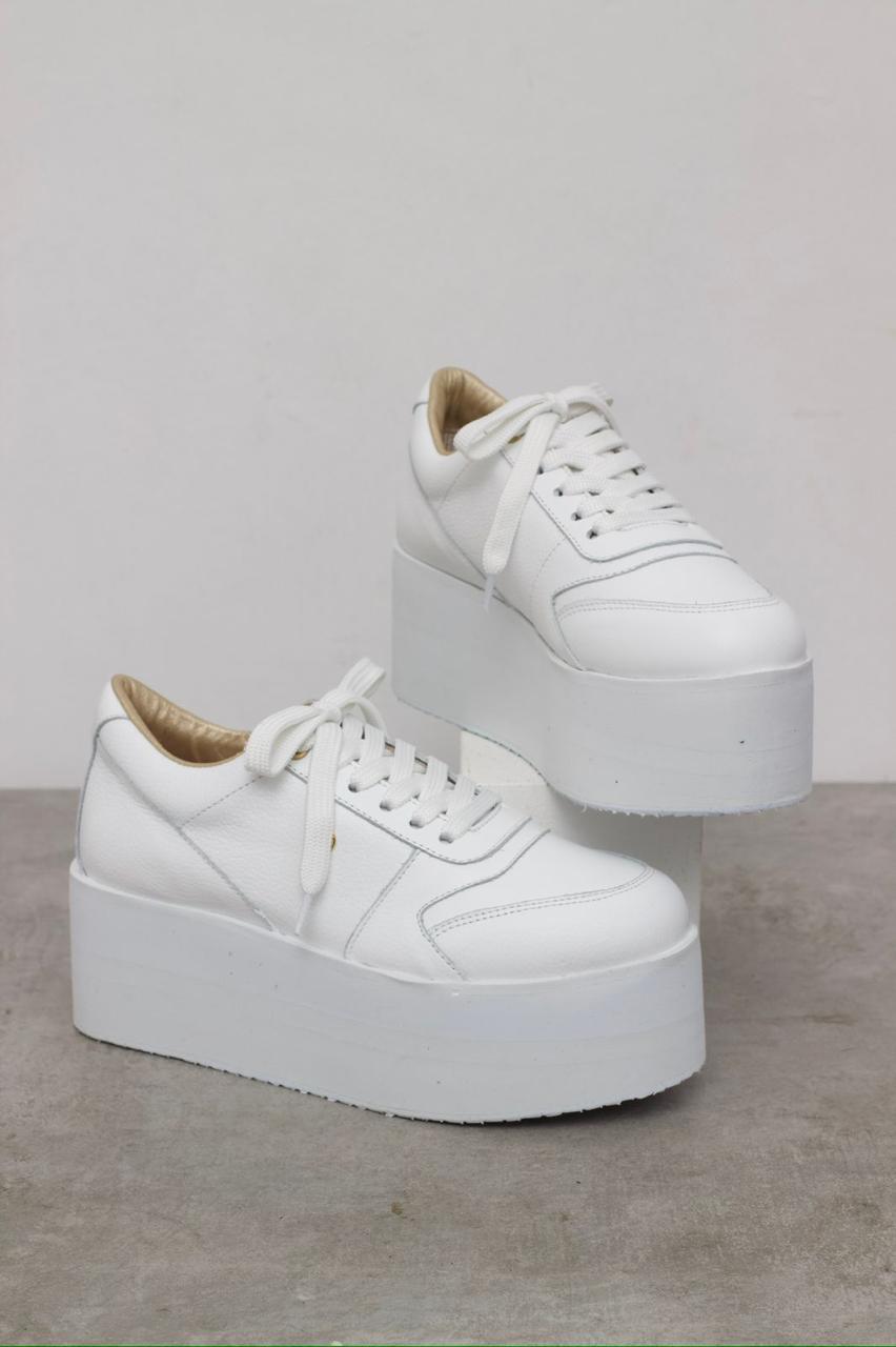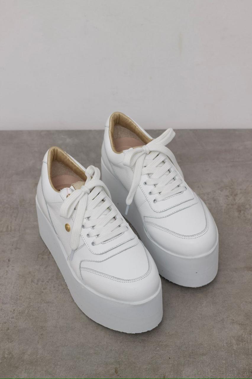 Tenis de plataforma en cuero tono blanco, con un estilo elegante y cómodo que acentúa tu lado femenino, suela en Eva a tono que da el toque especial, con una altura de 6.5 cms, plantilla ergonómica, fabricado con insumos de alta calidad que brindan un confort inigualable. Super cómodos y muy livianos, ideales para largas jornadas.
